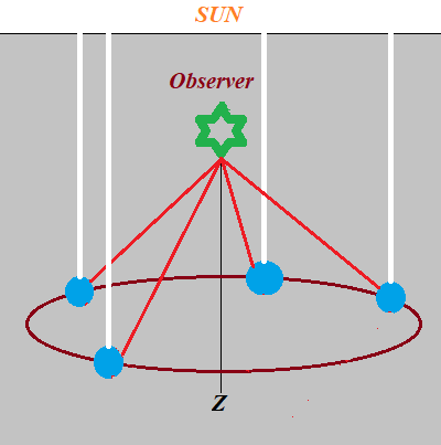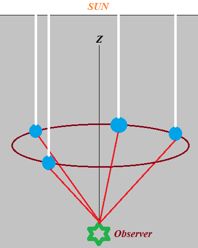 Imagine a line from the Sun to an observer as the Z-axis of some Cartesian coordinates in space with an observer being at coordinate z=0 and the Sun at some large positive Z-coordinate.