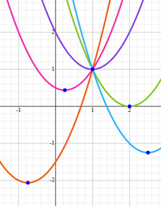 A=1 ⇒ y = x² − x + 1